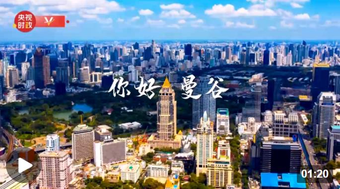 △曼谷街道,巨幅電子屏用中泰文字寫著“中泰一家親”。(總臺央視記者馬超拍攝)