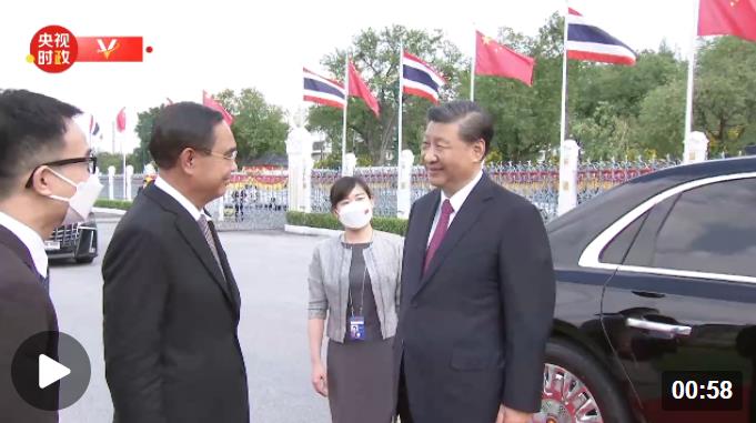 獨(dú)家視頻丨習(xí)近平抵達(dá)泰國(guó)總理府 巴育熱情迎接
