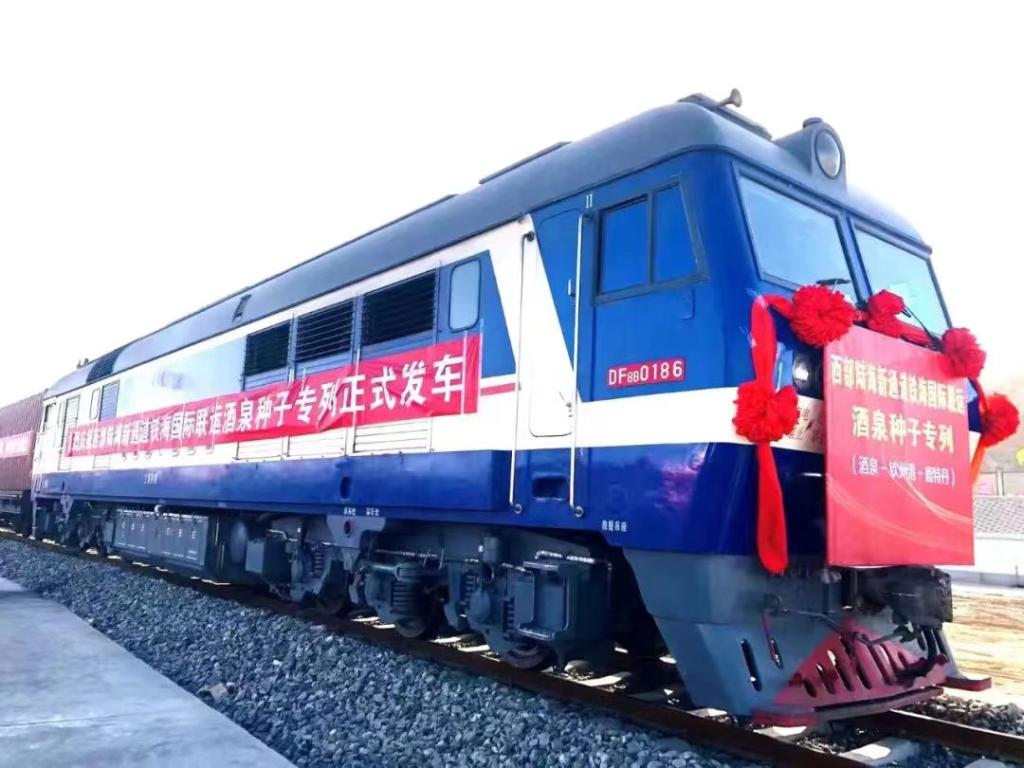 11月17日,西部陸海新通道(酒泉—欽州港—鹿特丹)鐵海國際聯(lián)運(yùn)班列首發(fā)。(受訪者供圖)