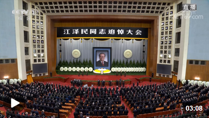 12月6日上午10時,黨中央、全國人大常委會、國務(wù)院、全國政協(xié)、中央軍委在北京人民大會堂隆重舉行江澤民同志追悼大會。