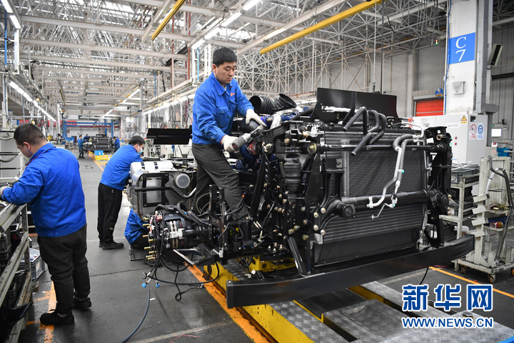 新華網西安2月23日電(史夢 張思思)工業(yè)機器人揮舞長臂,工人在生產線上緊張忙碌。在位于西安經開區(qū)涇渭新城的陜汽控股集團,總裝車間正馬力全開,每6分鐘就有一輛整車從這里下線。