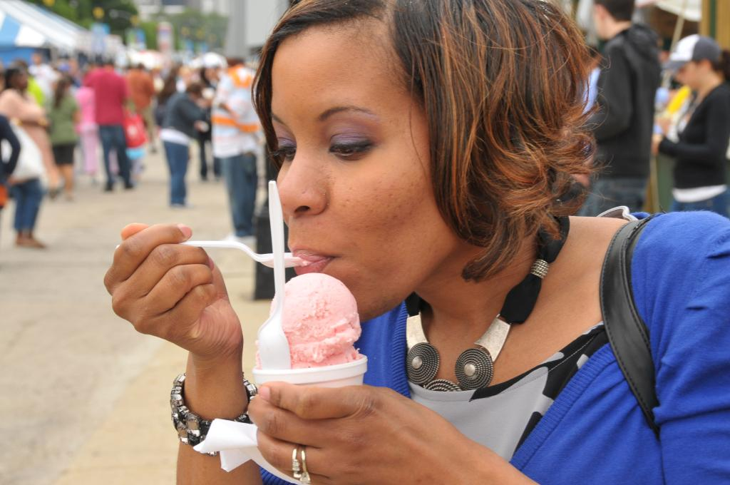 2011年6月24日,在美國芝加哥美食節(jié)上,一名女子品嘗冰激凌。新華社發(fā)(蔣新彤?dāng)z)