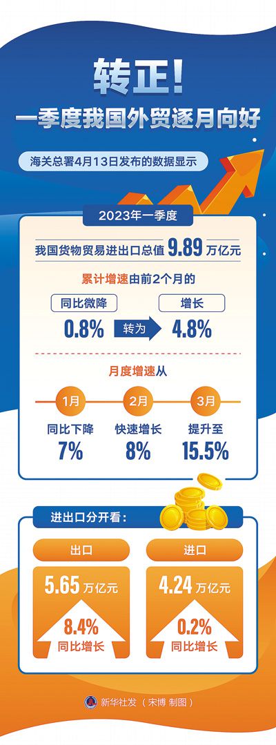-7%、8%、15.5%,一季度,中國進(jìn)出口增速逐月提升——保穩(wěn)提質(zhì),中國外貿(mào)加速跑。