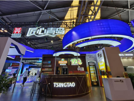 與往年展會(huì)不同,青島啤酒在展臺(tái)設(shè)計(jì)上,一枚紅、綠、金三色勾勒的120周年紀(jì)念標(biāo)識(shí),格外引人注目,試飲杯中、啤酒泡沫上,紀(jì)念標(biāo)識(shí)的拉花與之呼應(yīng)成趣。