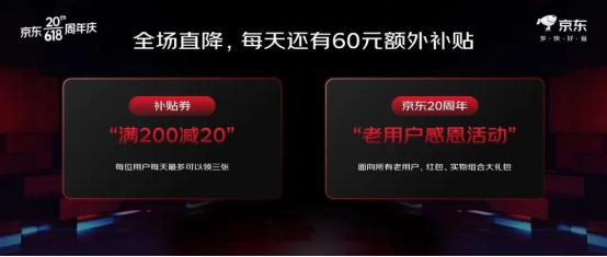 此外,今年京東618還推出了“京東20年 一路相伴”老用戶感恩活動,為所有京東老用戶帶來福利。針對京東PLUS會員用戶,京東618也推出了“618京東PLUS會員超級卡”等專屬福利。