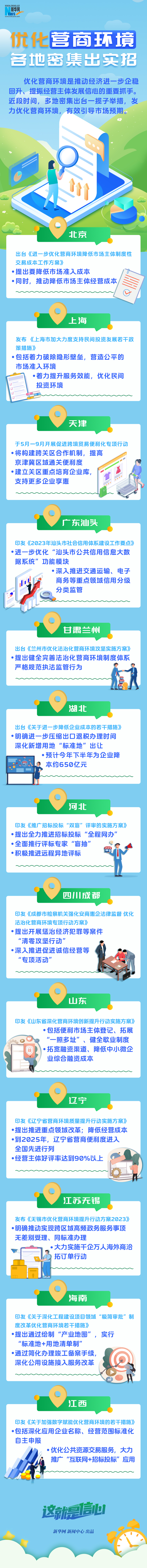 優(yōu)化營商環(huán)境是推動經濟進一步企穩(wěn)回升、提振經營主體發(fā)展信心的重要抓手。近段時間,多地密集出臺一攬子舉措,發(fā)力優(yōu)化營商環(huán)境,有效引導市場預期。