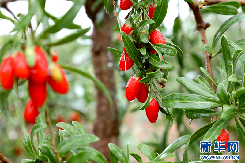 新華網(wǎng)銀川6月18日電 夏雨潤澤煥然新。18日,以“六月頭茬枸杞紅 開園采摘享健康”為主題的第六屆枸杞產(chǎn)業(yè)博覽會枸杞開園節(jié)在中國供銷惠農(nóng)·璽贊生態(tài)枸杞莊園開幕。一場雨讓頭茬枸杞鮮果嬌艷欲滴,分外惹人。