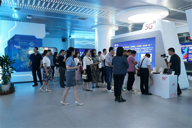 上午9時許,全體嘉賓參觀了5G科技創(chuàng)新館,聽取了陜西聯(lián)通立足“國家隊、主力軍、排頭兵”定位,聚焦中國聯(lián)通五大主責(zé)主業(yè),奮楫?dāng)?shù)字經(jīng)濟(jì)主航道取得的實踐成果的介紹,詳細(xì)了解了5G數(shù)字技術(shù)在政務(wù)服務(wù)、經(jīng)濟(jì)金融、文化教育、醫(yī)療衛(wèi)生、工業(yè)互聯(lián)網(wǎng)、園區(qū)建設(shè)、生態(tài)旅游等方面的智慧應(yīng)用。他們對近年來數(shù)字技術(shù)賦能千行百業(yè)的成果表示驚嘆,同時對陜西聯(lián)通的應(yīng)用及創(chuàng)新能力連連贊揚。