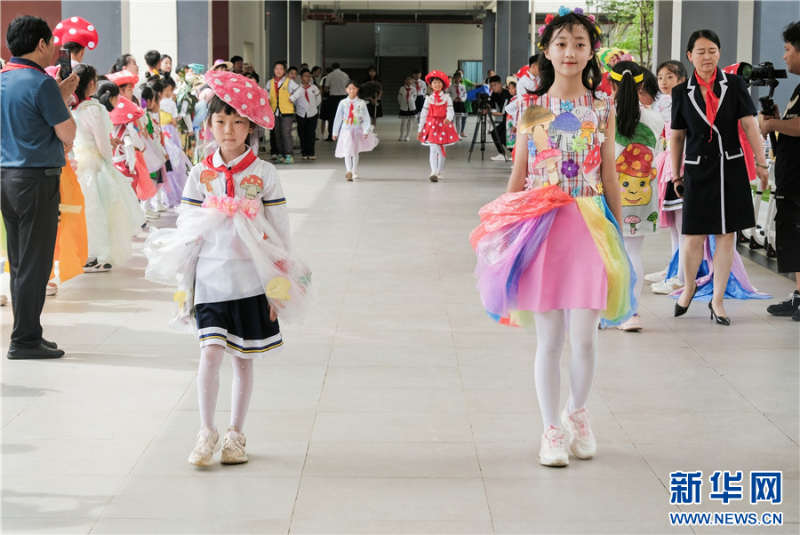 長廊里,孩子們走起了野生菌環(huán)保時裝秀