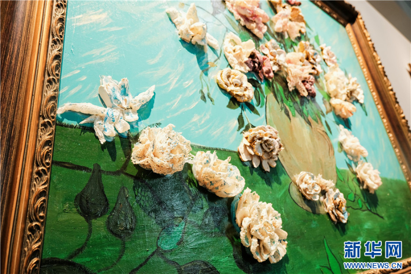 《向日葵》《玫瑰》《杏花》三幅畫分別用雞樅、白參、竹蓀、猴頭菇等野生菌制成