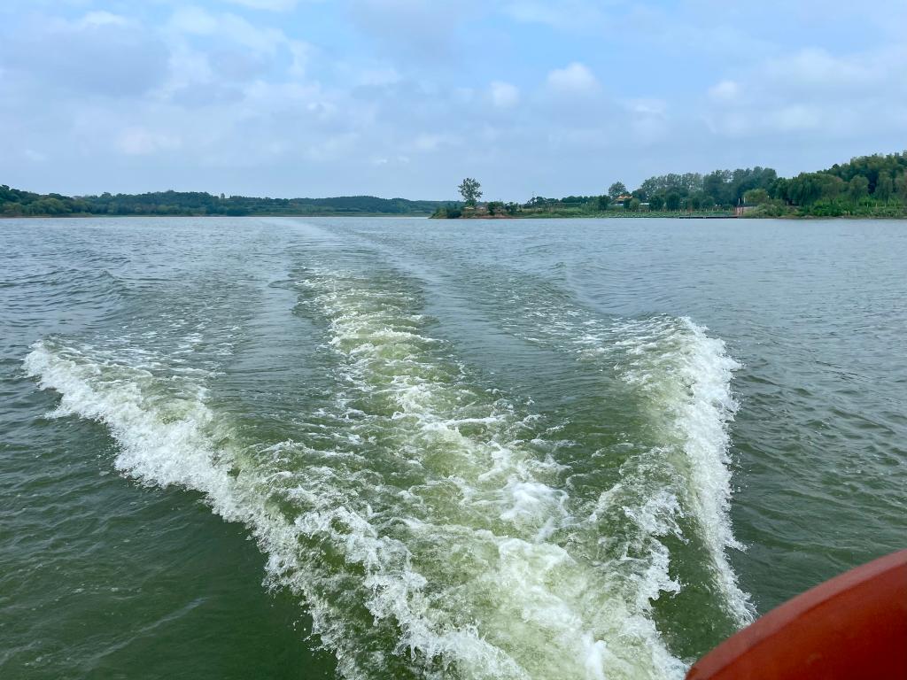 在毛里湖中,記者乘坐的小艇行經(jīng)島嶼、峽灣時,水邊不時會出現(xiàn)一叢叢隨波搖曳的野生荷花、菱角,一群群嬉戲覓食的野鴨、鷗鷺。