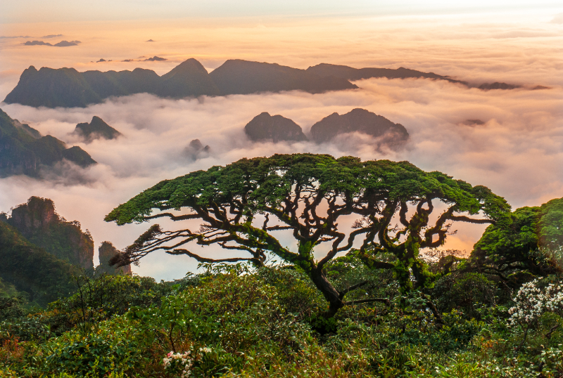 廣西大瑤山國(guó)家級(jí)自然保護(hù)區(qū)圣堂山頂“八桂迎客松”鐵杉,600年。李德康攝