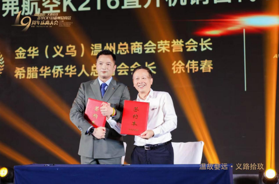 8月21日,在浙江義烏舉行的金華(義烏)溫州總商會十九周年慶典大會上,多弗集團旗下多弗航空攜手全球各地多家商會,簽署代理合作,布局國際化銷售。