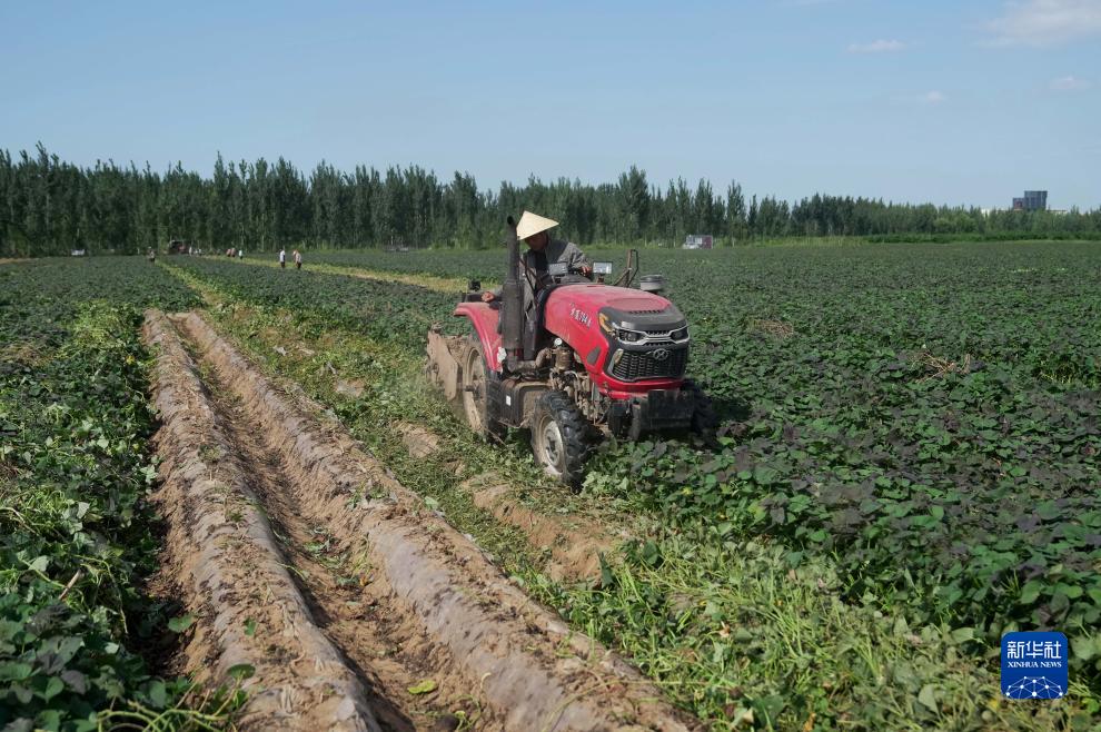 8月28日,灤州市九百戶鎮(zhèn)一家鮮食紅薯種植合作社的農(nóng)機(jī)手駕駛農(nóng)機(jī)在田間粉碎紅薯秧,準(zhǔn)備收獲紅薯。