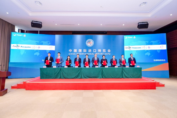 拜耳中國(guó)公共與政府事務(wù)及可持續(xù)發(fā)展副總裁高勇博士(左五)代表拜耳提前簽約第七屆進(jìn)博會(huì)