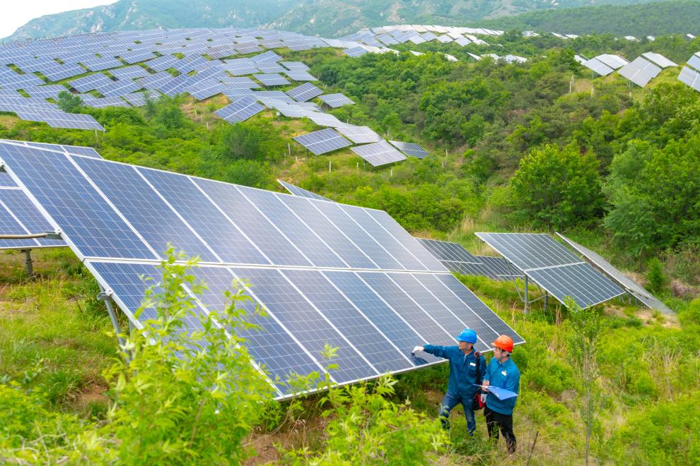 在煙臺市福山區(qū)回里鎮(zhèn)老嵐村,一排排藍(lán)色光伏板鋪滿山坡。這些光伏板將太陽光轉(zhuǎn)化成電能,并入國網(wǎng)煙臺供電公司后,源源不斷輸送到千家萬戶。原來無人問津的黃草坡,變成了綠色清潔能源的“發(fā)電站”。