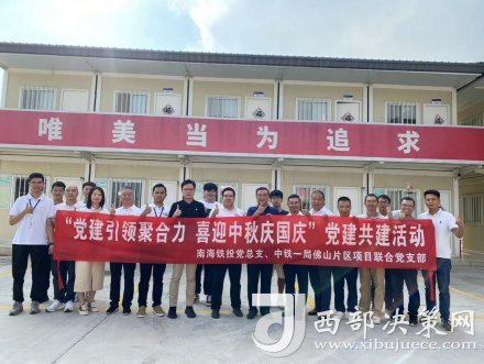 西部決策網(wǎng)訊 9月28日下午,中鐵一局一公司佛山片區(qū)項(xiàng)目聯(lián)合黨支部與業(yè)主單位南海鐵投公司黨總支聯(lián)合開展“黨建引領(lǐng)聚合力 喜迎中秋慶國慶”黨建共建系列活動,南海鐵投黨總支書記、總經(jīng)理黎瑞聰,佛山片區(qū)項(xiàng)目黨支部專職副書記吳俊榮及共建雙方成員共30余人參加活動。