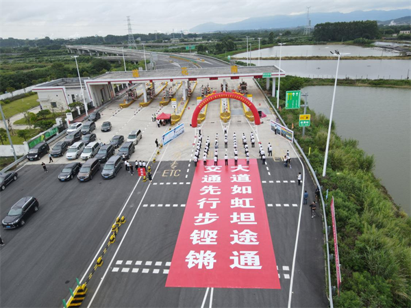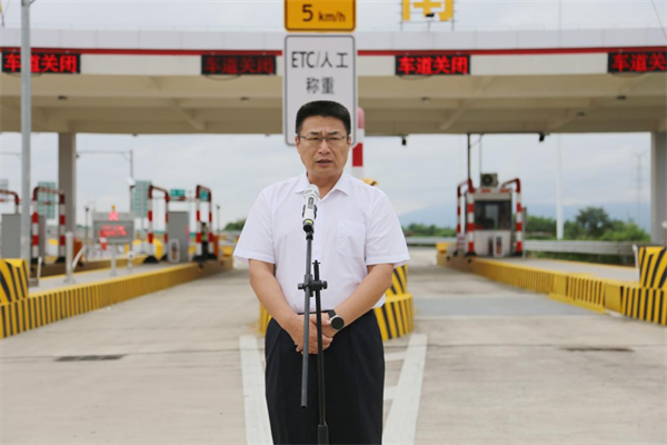 肇慶市副市長謝桂坤宣布東進(jìn)大道三期工程蓮花南互通立交及收費(fèi)站正式開通