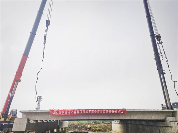 近日,肇慶新區(qū)臨港產(chǎn)業(yè)園波羅竇中橋首片預(yù)制箱梁架設(shè)完成,標(biāo)志中鐵一局一公司承建的肇慶臨港產(chǎn)業(yè)園項目施工生產(chǎn)按下“快進(jìn)鍵”。