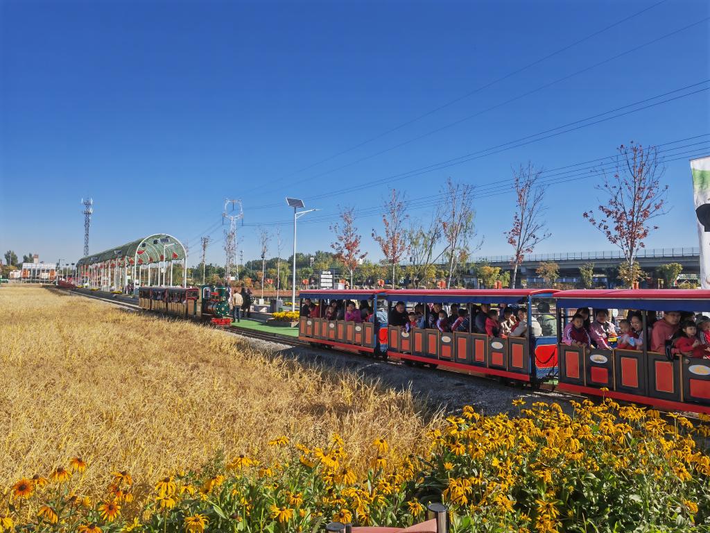 這是10月20日拍攝的稻田公園里的小火車。新華社記者 魏飚 攝