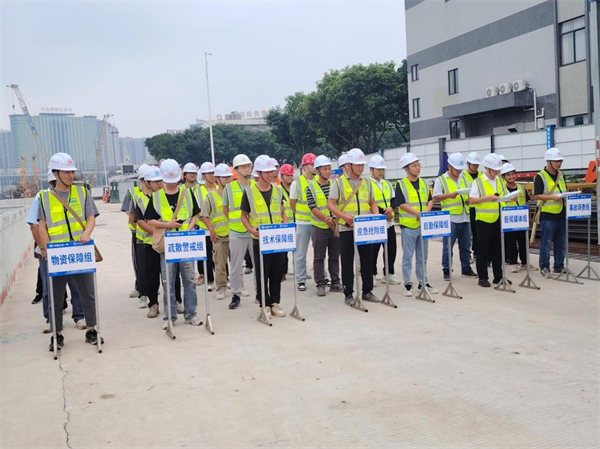 演練模擬項(xiàng)目車(chē)站在深基坑土方開(kāi)挖過(guò)程中出現(xiàn)涌水涌泥緊急情況,接到“險(xiǎn)情”匯報(bào)后,項(xiàng)目負(fù)責(zé)人歐瓊第一時(shí)間迅速啟動(dòng)應(yīng)急預(yù)案,立即組織疏散警戒組人員到達(dá)現(xiàn)場(chǎng)緊急疏散人群,做好警戒,確保搶險(xiǎn)道路暢通。應(yīng)急演練從發(fā)現(xiàn)險(xiǎn)情、啟動(dòng)應(yīng)急預(yù)案、應(yīng)急搶險(xiǎn)到恢復(fù)正常生產(chǎn)秩序,時(shí)長(zhǎng)近60分鐘,啟用各類(lèi)車(chē)輛、機(jī)械10多輛(臺(tái))。演練人員聞警而動(dòng),各個(gè)環(huán)節(jié)緊密銜接,各職能部門(mén)密切配合,處置得當(dāng),搶險(xiǎn)反應(yīng)迅速,在短時(shí)間內(nèi)完成了搶險(xiǎn)救援工作,整個(gè)演練過(guò)程緊張有序,取得了良好的效果。