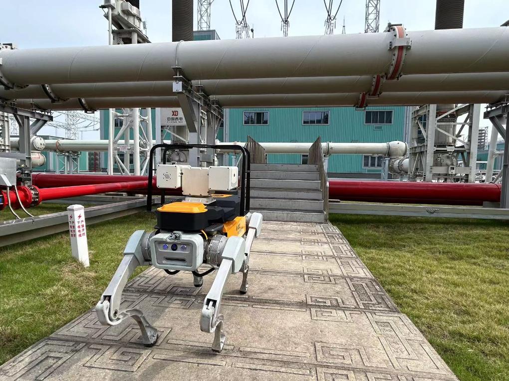 正在古泉換流站設(shè)備區(qū)域內(nèi)作業(yè)的四足機(jī)器狗。新華社記者吳慧珺 攝