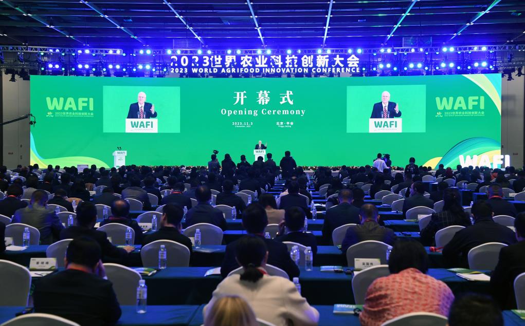 11月3日,世界糧食獎(jiǎng)基金會榮譽(yù)主席肯尼思·奎因在2023世界農(nóng)業(yè)科技創(chuàng)新大會開幕式上致辭。新華社記者 任超 攝