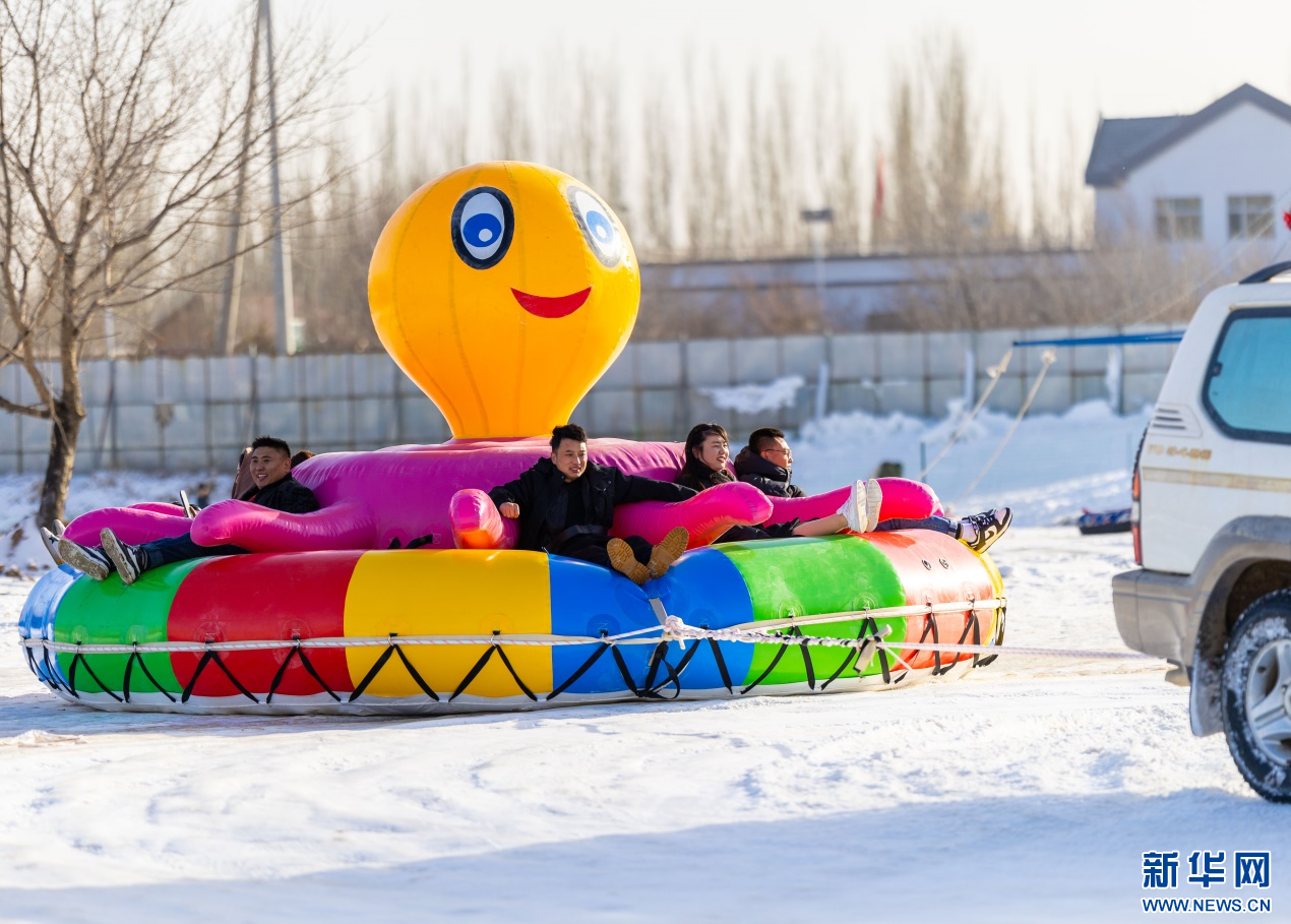12月7日,游客在呼和浩特市玉泉區(qū)大庫倫村“冰雪大世界”內(nèi)體驗雪地八爪魚項目。新華網(wǎng)發(fā)(丁根厚 攝)