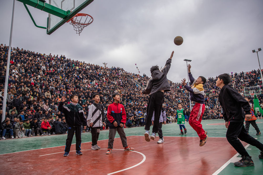↑貴州省黔東南州臺(tái)江縣臺(tái)盤(pán)村的小朋友在比賽前打籃球(3月25日攝)。當(dāng)日,貴州省首屆“美麗鄉(xiāng)村”籃球聯(lián)賽總決賽在臺(tái)盤(pán)村開(kāi)打。