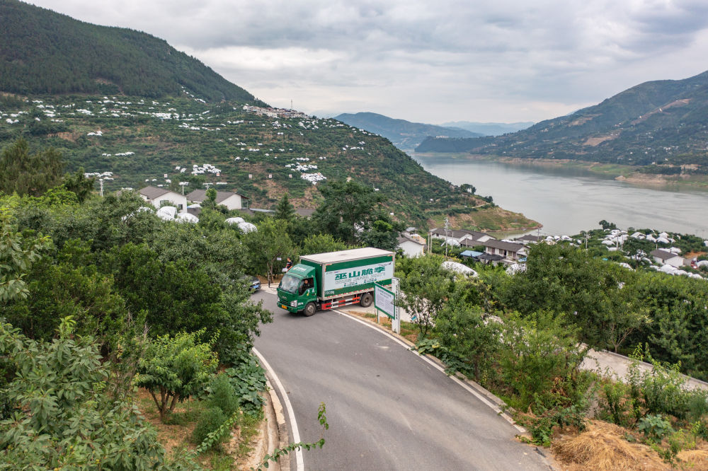 ↑重慶市巫山縣曲尺鄉(xiāng)柑園村,裝載有巫山脆李的中國(guó)郵政物流車行駛在村內(nèi)(無(wú)人機(jī)照片,6月28日攝)。過(guò)去因?yàn)槲锪鞑槐?,?jīng)過(guò)幾天的運(yùn)輸后,脆李的品質(zhì)和口感會(huì)受到影響?,F(xiàn)在,航空快遞的開(kāi)通,讓巫山脆李快速走向全國(guó)。