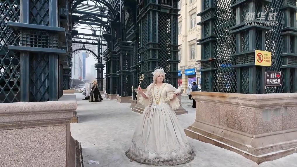 作為“必打卡”的熱門景區(qū)之一,不管白天黑夜,中央大街總是人頭攢動。索菲亞大教堂上空升起了人造月亮,來自全國各地的旅拍“公主”,在這里圓上了自己的冰雪奇緣夢。