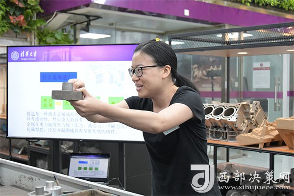 “取出這個氣孔針,扎到什么位置,放在哪里,還記不記得?”2021年,清華大學(xué)基礎(chǔ)工業(yè)訓(xùn)練中心的鑄造課短視頻在社交平臺上走紅,獲得百萬點(diǎn)贊。授課老師扎著馬尾,穿一身黑色T恤,身前是堆滿黑色粉末的操作臺。“位置確定了,深度怎么確定?看,用氣孔針量一下剩下的距離。”她一邊拿著工具在操作臺側(cè)比劃著一邊說道,“手指向下8到10個毫米,咱們扎氣孔。”動作行云流水,一氣呵成。