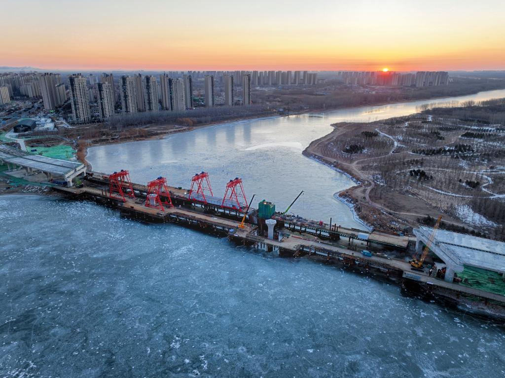 廠通路潮白河大橋項目建設現(xiàn)場(無人機照片)。新華社記者 邢廣利 攝