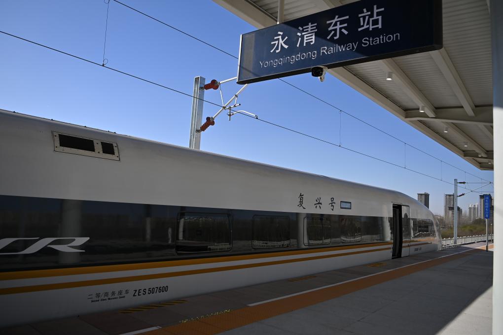 一輛復興號動車組列車??吭诮蚺d城際鐵路永清東站。新華社記者 李然 攝