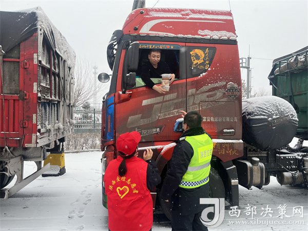在各收費(fèi)站,工作人員也熱火朝天、行動(dòng)起來(lái),大家齊力清除廣場(chǎng)、車道積雪,做好交通管制解釋。志愿者們配足熱水、常用藥品和簡(jiǎn)易維修工具等,為過(guò)往司乘開(kāi)展出行引導(dǎo)和便民服務(wù),幫助司機(jī)解決困難。同時(shí),為滯留的司乘朋友提供食物和休息,讓他們?cè)诤涠粘陨蠠狎v騰的飯、感受到來(lái)自榆靖人的溫度。