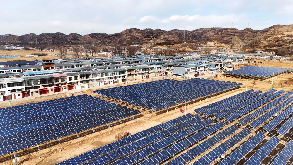 這是位于陜西省米脂縣井家畔村的光伏電站(無人機照片,2024年3月1日攝)。新華社記者 鄒競一 攝
