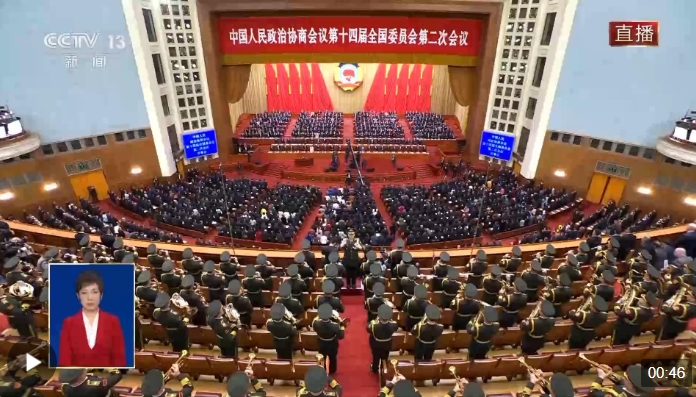 獨(dú)家視頻丨全國政協(xié)十四屆二次會議開幕 全場高唱國歌